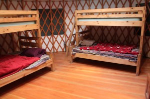 Inside of our yurt. It was so clean and the beds were pretty comfy, beats sleeping on the ground that’s for sure.