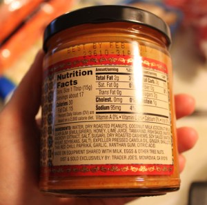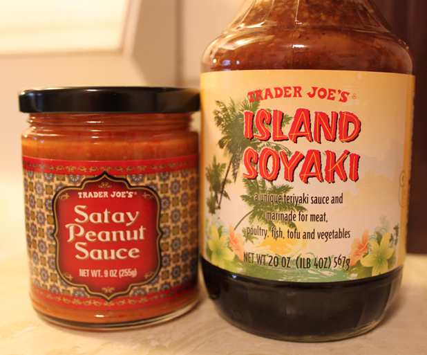 My problems were solved when I saw that Trader Joe’s makes their own peanut sauce (with minimal garbage in it and decent nutritional info). That paired with their Island Soyaki sauce, I was set!