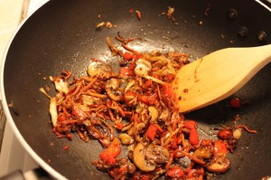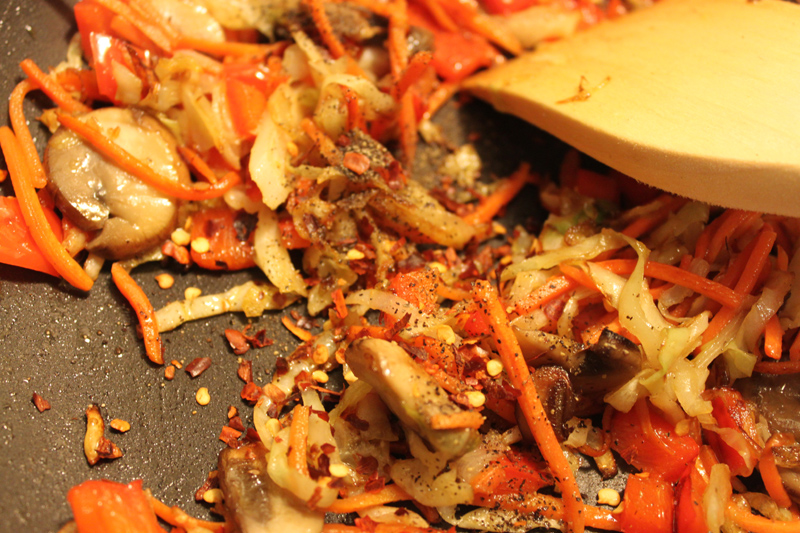 When they got soft I added my pepper and crushed red pepper flake: