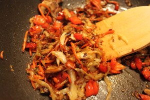 Tip: Don’t skip these! (Unless of course you are a freak and don’t like red peppers. I can’t even imagine that. They are so crisp, sweet, and fresh tasting! Freak!) Anyways, they added so much flavor to this dish, I really think something would have been lacking if these weren’t included.