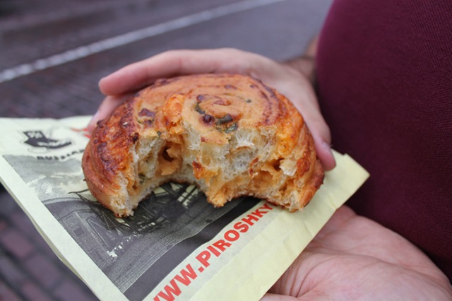 Your first stop on any trip to Pike Place should be to Piroshky, Piroshky. I recently learned that it’s pronounced pee-ruzh-ki and not puh-rosh-kee. Also it’s really one pirozhok (pee-ruzh-uk), pirozhki is the plural. If you want to get technical about it. And I do.
