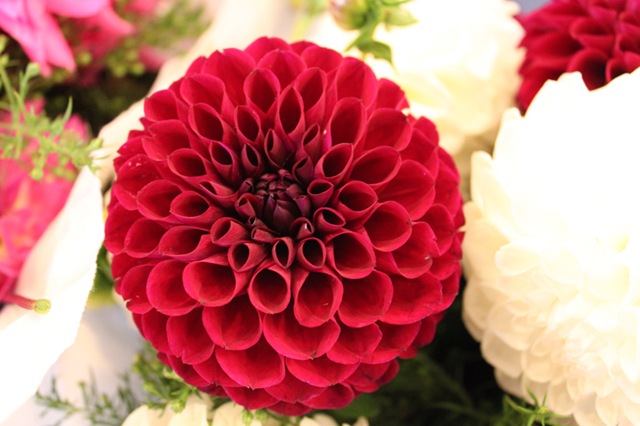 I have to mention that I fell head over heels in love with all of the dahlias. Specifically the white ones and more specifically the white ones tinged with purple (see below). Dahlias are so delicate and intricate, and the color variety was unbelievable. They are just gorgeous.