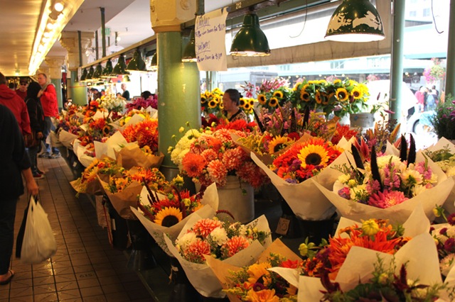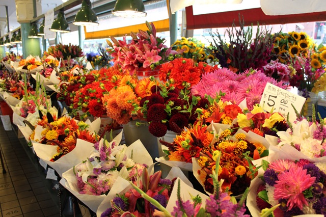 My god the flowers. So beautiful they will take your breath away. Let me be clear for folks who have never been here: there is not one flower stand, there are dozens. Each packed with flowers, each bouquet more lovely than the next, the smell of fresh flowers enticing you at ever corner. If I lived in Seattle I’d be down here every week buying fresh flowers.