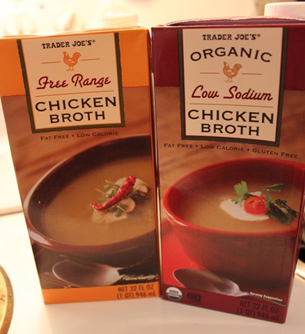 2 quarts (2 containers) of chicken broth/stock or homemade, whatever – I prefer one regular and one low sodium