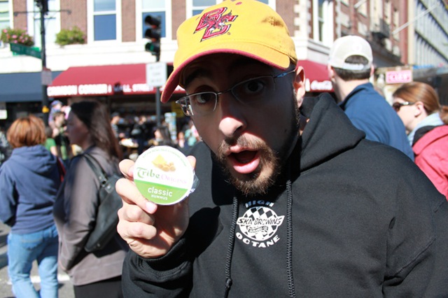 John got some free hummus: