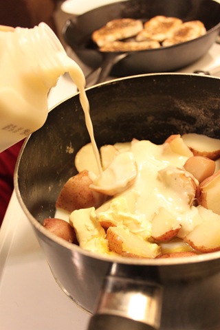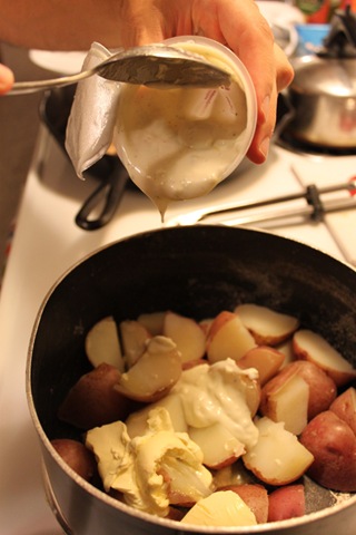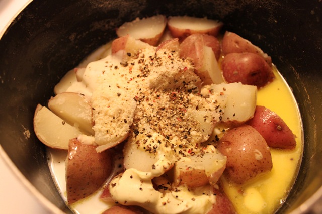 Time for all your add-ins: bleu cheese, milk, parmesan cheese, butter, salt and pepper.