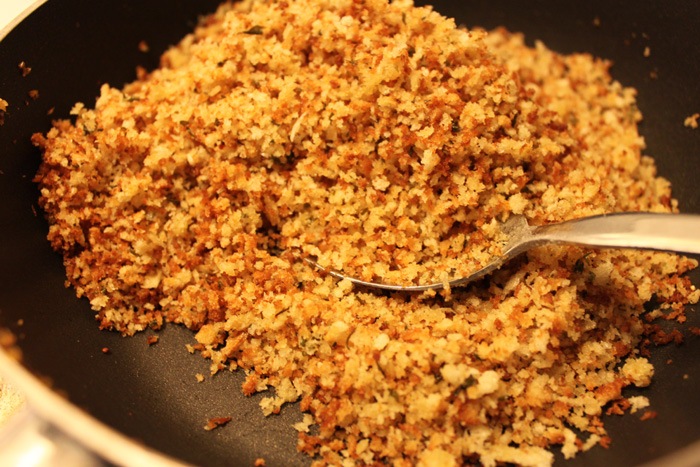 The cheese takes a while to melt so this is a good time to make a crumb topping. It’s super easy.