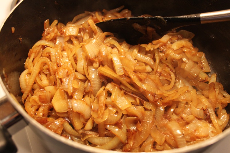 Sidenote: I have finally found the perfect utensil for caramelizing onions: the IKEA stirring spatula. It’s sturdy, small, and thin, making it perfect for maneuvering a hot pan. Also, the flat, yet heavy duty, spatula makes it very easy to separate each piece of onion from the large chunks I cut.