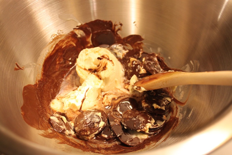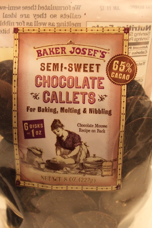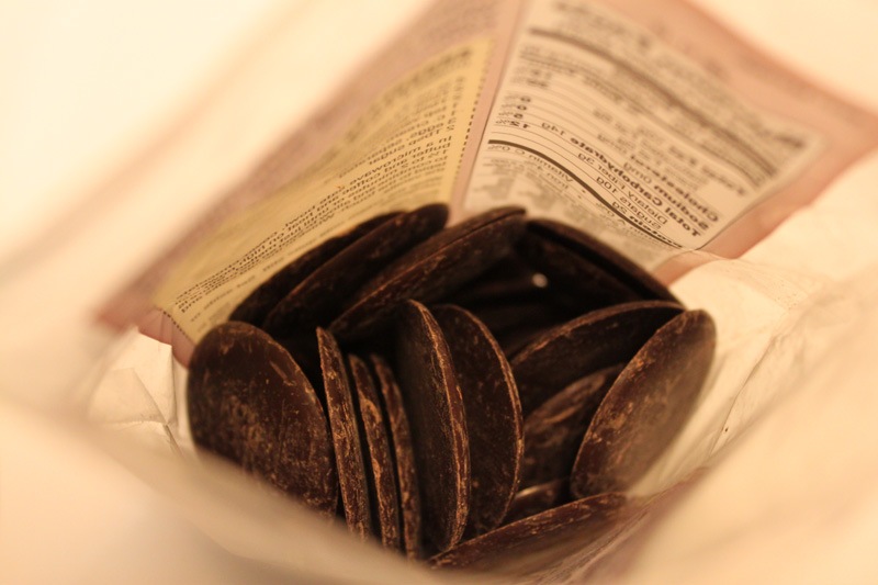 I found these chocolate callets at Trader Joe’s. How amazingly convenient, right? They are 65% cacao, semi-sweet-delicious. Also, the packaging is super helpful telling you on the from that 6 discs = 1 oz. Thank you TJs!