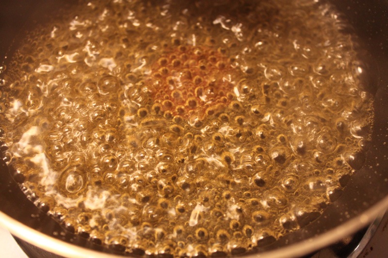 Let’s begin: Bring your water, 2.5 tbsp. agave, and sugar to a boil. When it reaches soft candy ball consistency (235 degrees), toss in 3 tbsp. butter, melt, pour over your crispy cereal, toss in the salt, stir to coat each piece, and get in into a buttered pan.