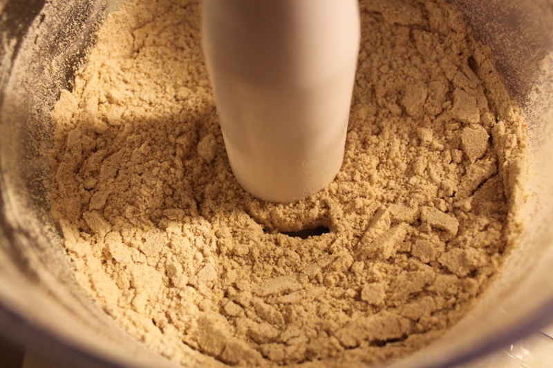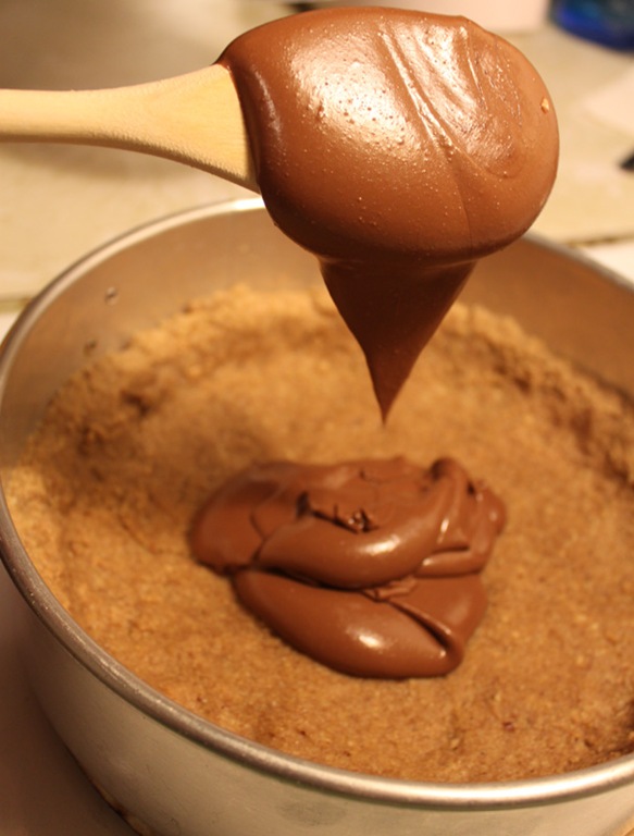 Making the crust was easier than I thought. I pulsed all the ingredients in my foodpro, added melted butter, pulsed again, turned out into a springform pan, and pressed into a crust shape.