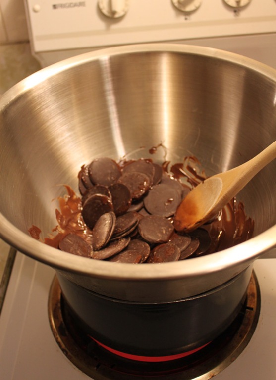For the chocolate: Melt 8 oz. of chocolate over a double boiler. Let it completely cool before using it.
