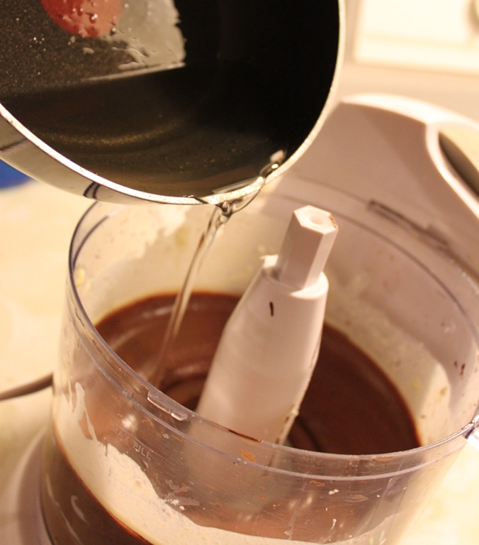 Once your syrup and chocolate have cooled, and your pie crust phase I is complete, you can finish making the pie filling.