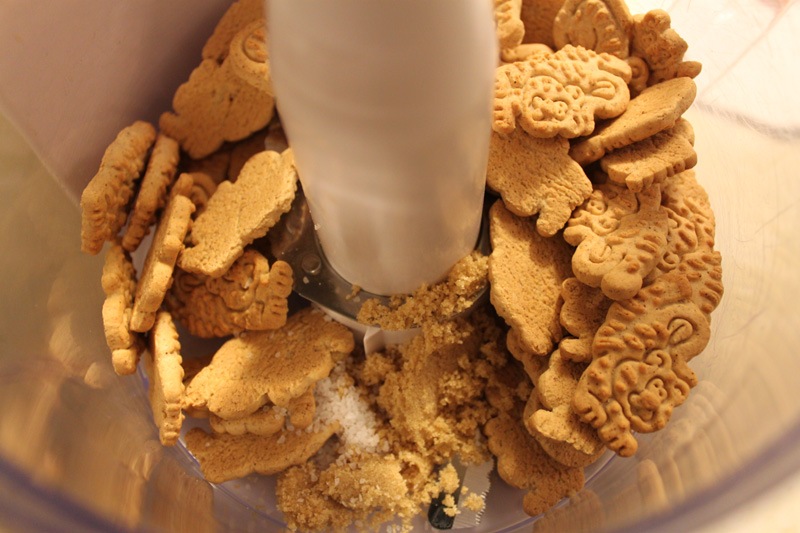 Make the crust first so it can bake while you work on your filling. Load up all the ingredients in your foodpro and pulse. Press into a springform pan and bake according to directions above.