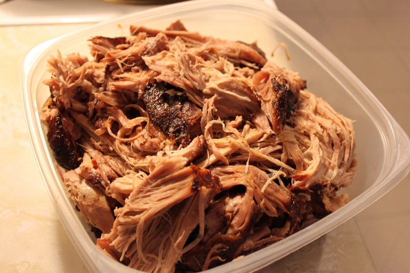Really?? It’s so hot when we take it out of the oven we have to wait at least an hour to pull it. It stays hot throughout the process, I’d assumed it was because of the residual heat. It never goes cold though because, as you might be able to see in the picture, we place the pulled pork in a tupperware and loosely put the lid on between pulling sections. Does that make sense?