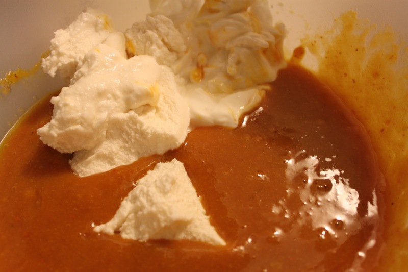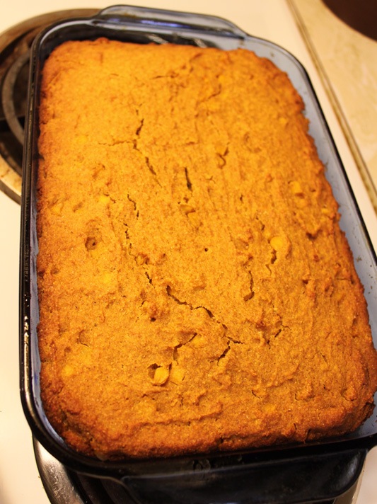 Iowa Girl Eats posted an interesting recipe last week with a hidden ingredient – pumpkin puree! I thought why not embrace that yumminess and make a seasonally spiced (pumpkin, molasses, nutmeg, and cinnamon) cornbread. I also hate, hate dry cornbread. IGE’s recipe called for milk which I never have so I swapped in some greek yogurt and ricotta cheese. Sounds funky but the bread is so moist. Now that’s what I call a secret ingredient!