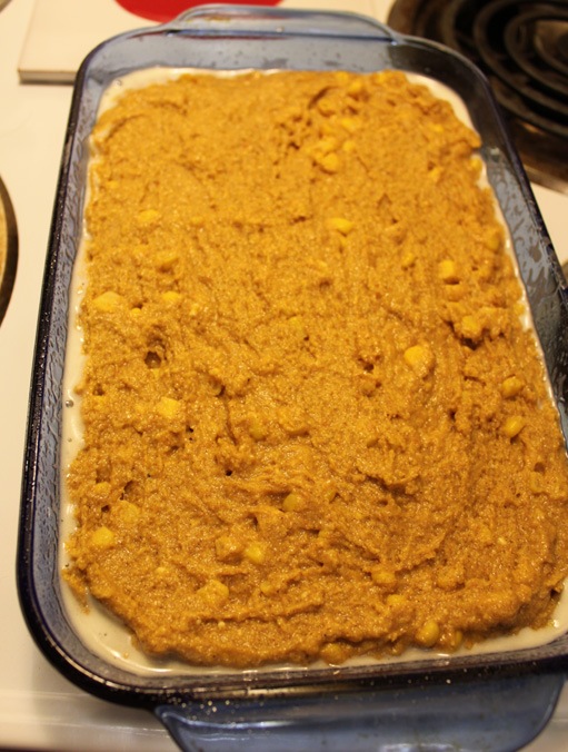 Pour into a greased 2 quart oblong glass bakeware dish (my preference but any bread or loaf pan will do). Bake on 375 degrees for roughly 40 minutes (I rotated mine once at 20 minutes because my oven is a jerk).