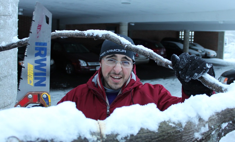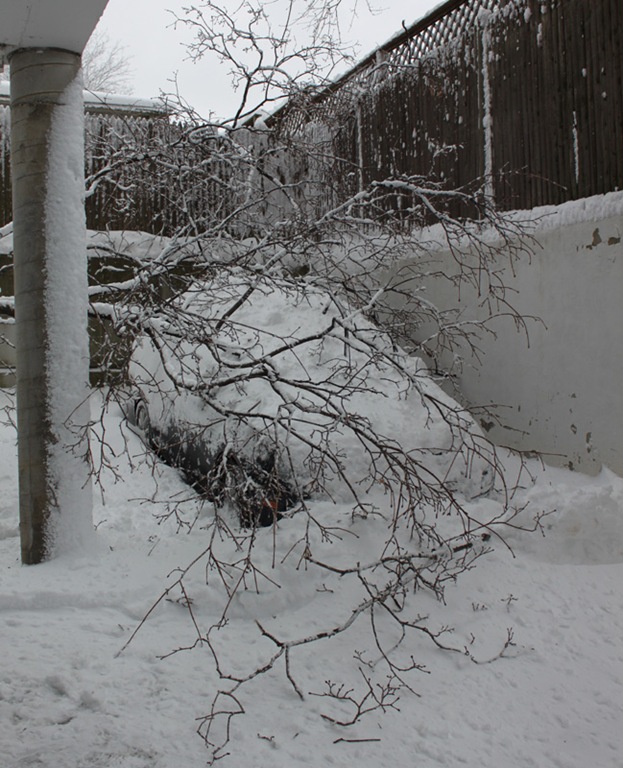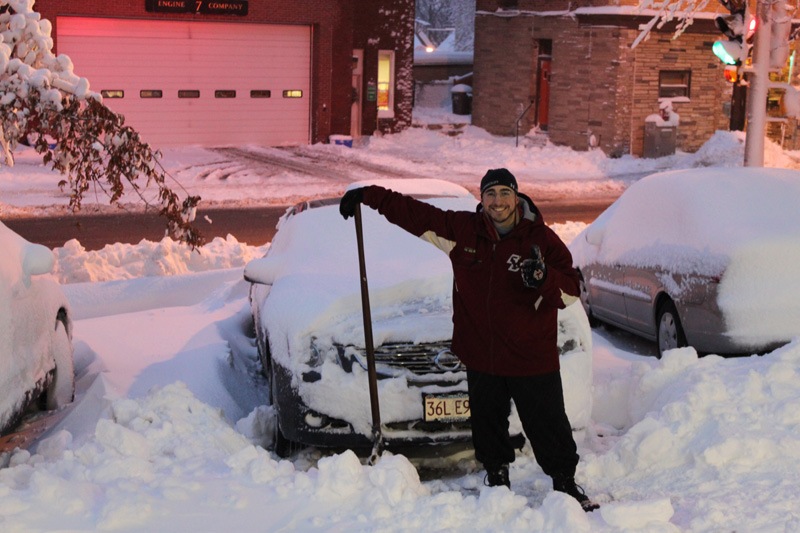 Things went sour when we went outside to dig out our cars at 4PM. We discovered my car had an enormous fallen tree limb on it! It was too big and heavy to move and we weren’t sure what to do. Thankfully the Somerville Fire Department is literally across the street so we went and asked to borrow a saw from them. We hacked apart the downed tree, dragged it all out of the parking lot, and eventually uncovered my car. Thankfully there appears to be no damage.