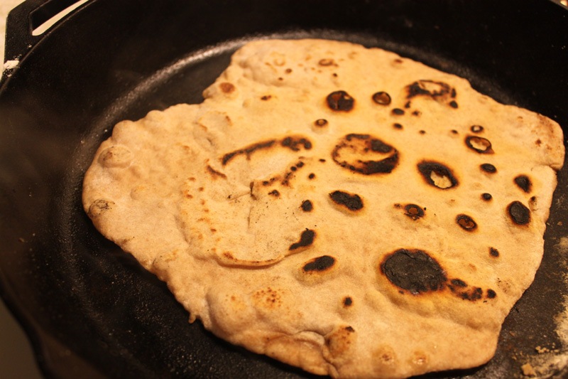 The best thing about this recipe is that it’s totally versatile. So when we were craving naan bread and didn’t want to buy the overpriced stuff from Whole Foods or get take out (because ordering food I could make myself makes me feel too guilty), I made a batch of this bread and cooked it up in my cast iron pan naan-style.