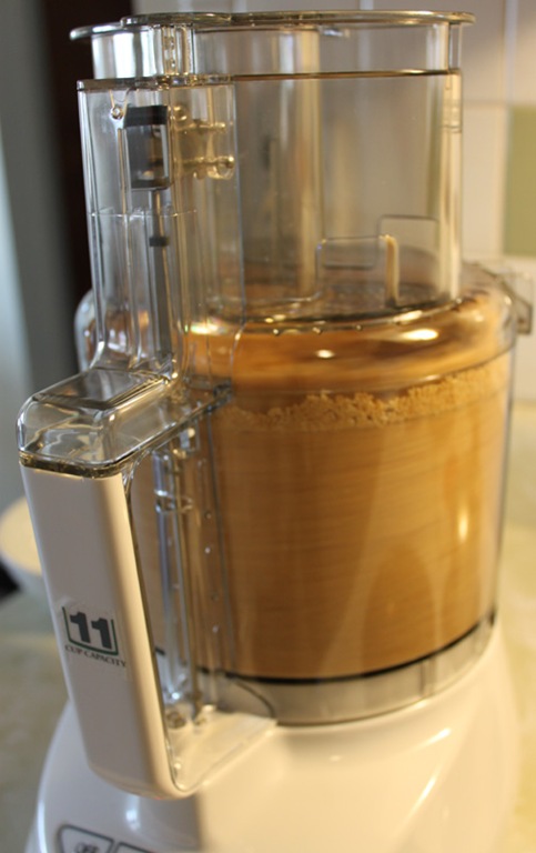 Add your honey and peanut oil: drizzle in a tablespoon at a time while processing in your foodpro.