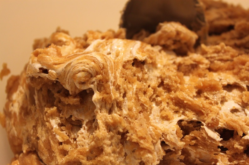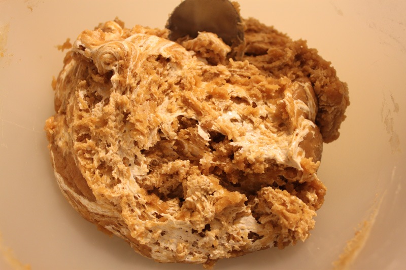 One by one, combine all of your ingredients. Smart Balance and peanut butter first (feel free to soften these together in the microwave for a few seconds if the need be):