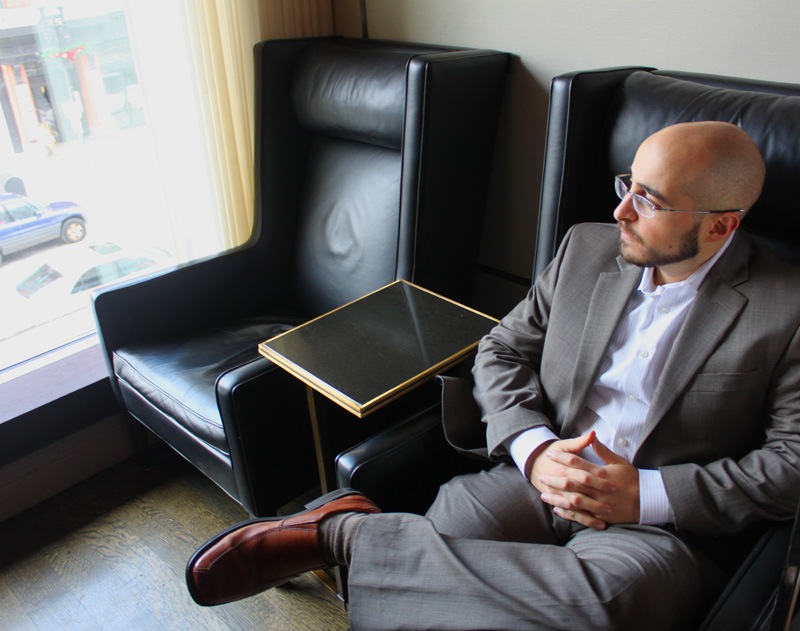 You’re greeted the second the door opens, your coat is taken, and you’re asked to take a seat in the plush salon. Here’s John enjoying the view on to Boylston: