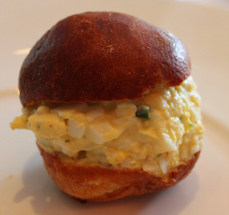 Next on the menu are the tea sandwiches: cucumber and cream cheese, smoked salmon, grilled ham and cheese, lobster salad in a pretzel roll, and egg salad on brioche. Thinking about this now is making my mouth water. The various breads are fresh and moist. All of the fillings were crisp, flavorful, and perfectly dressed. The pretzel roll was a unique new addition to the tea sandwich presentation. The egg salad on brioche is always my favorite though.