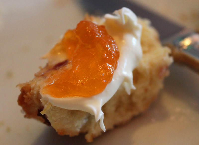 My old standby/all time favorite dessert is the scone slathered with clotted cream and apricot jam. I have daydreams about the buttery, flaky, sweet, and savory aspects of this perfect dessert.