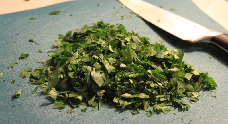 Next, prepare your slaw sauce. You could use dried parsley here but fresh is always best. They had this at the farmers market too from a CSA share in Pennsylvania. Very cool!
