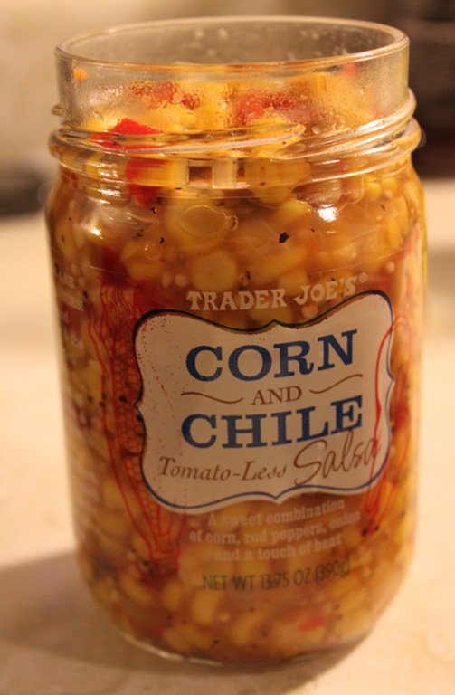 One 13.75 oz. jar of corn salsa (any kind you like, basically you want something that comes in a vinegar based liquid)