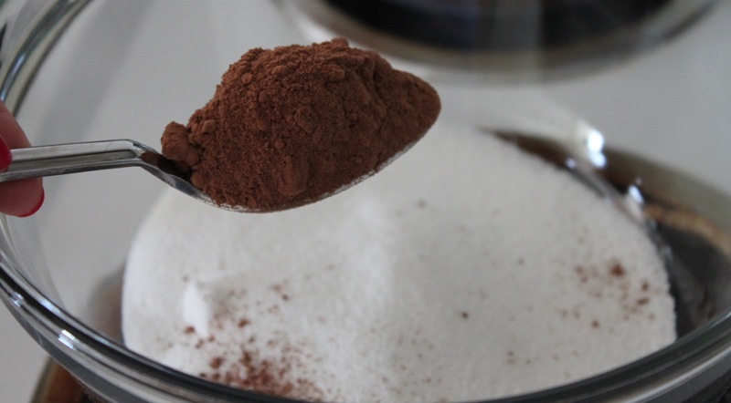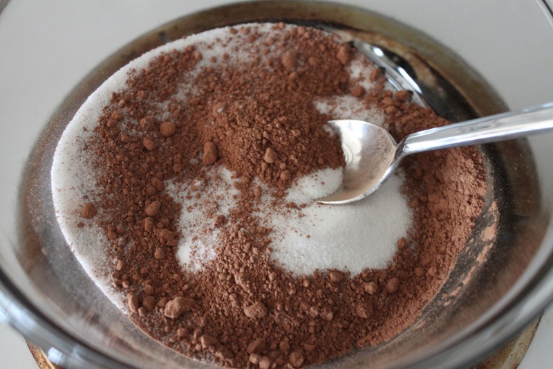 While that was melting, I combined my sugar, cocoa powder, flour, and salt in a bowl.