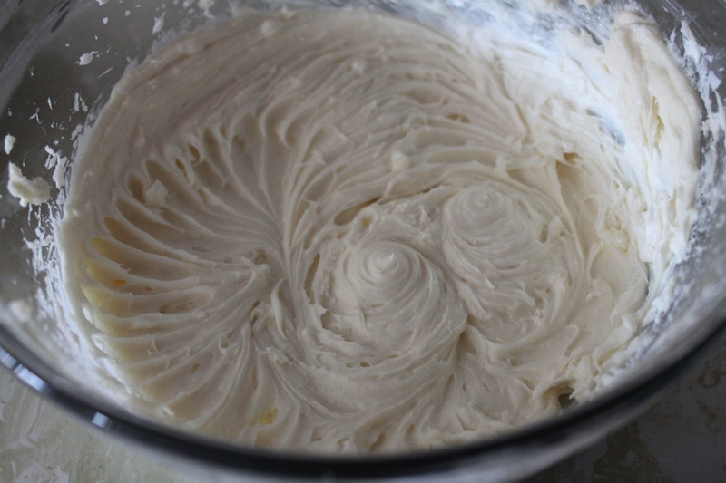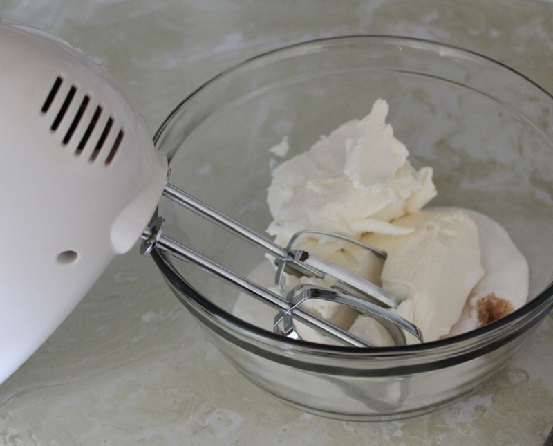 The cheesecake topping is easy! Beat together your cream cheese (I used half full fat, half reduced fat), sugar, and vanilla with a hand mixer. Voila, instant creamy goodness! If it’s too thick you can also add a tablespoon or so of water here too, I did.