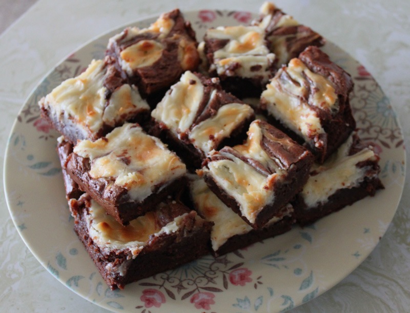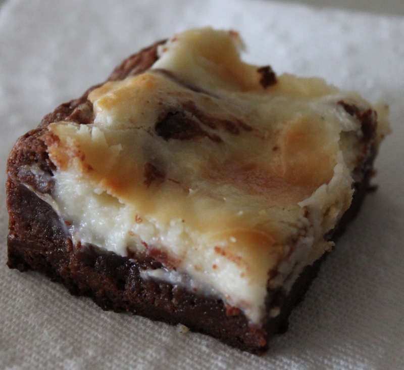 These brownies were decadent and delicious. Chocolately, cheesecakey, and super rich. The edges and bottom were perfectly crisp but the inside was gooey and chewy. The batter was so thick and unwieldy that if I make them again, I may try to thin it out a little with milk or something.