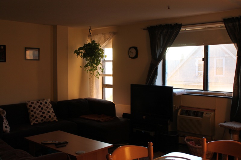 I love that first peek of morning light into our apartment and over the buildings on our street.