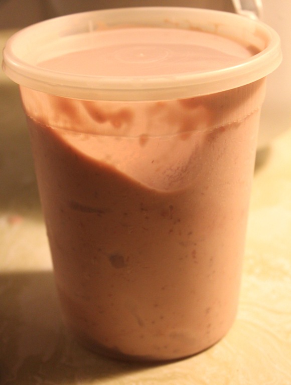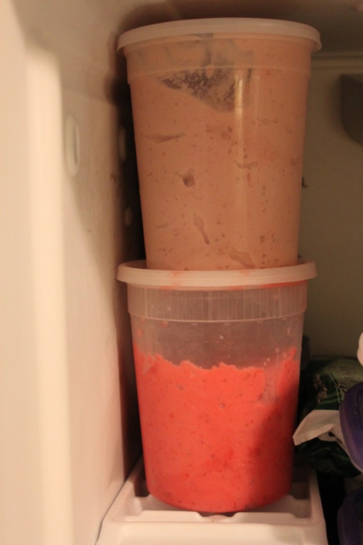 Store in a freezer safe tupperware container and freeze overnight. I don’t understand how the Strawberry Froyo is neon pink and the Strawberry Ice Cream is baby pink. Oh well!