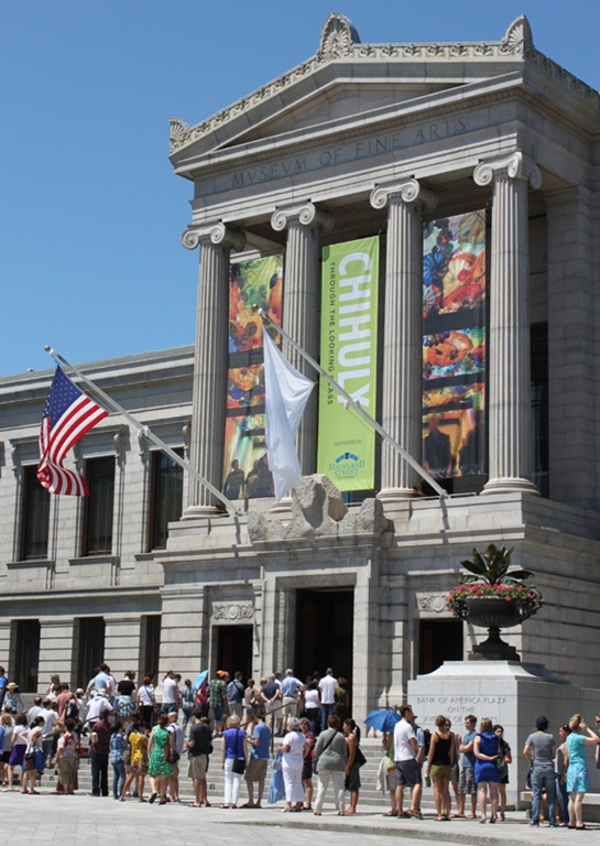 When we arrived at the MFA the line for the Chihuly exhibit was down the street! We waited for an hour in line outside. The exhibit ends in a few days so I totally understood the rush.