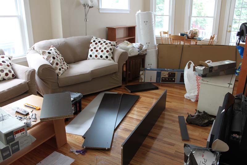 We decided that once the bed was in the condo that’s when we’d start sleeping there (even though we have the month of August to be out of our old apartment). The bed came over on Saturday and we set it up immediately. Cut to Saturday night when we realized we had no window coverings and everyone could see directly into our bedroom. Not to mention I was up at 5:30AM at first light.