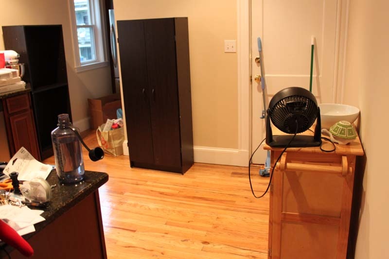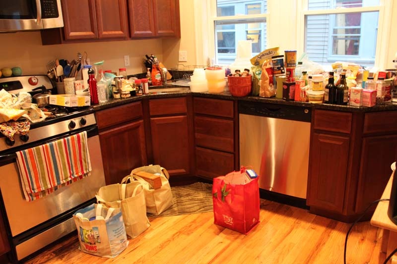 The kitchen cabinets fit all of our dishes, appliances, etc. but we needed more space for all of our pantry items. Yup, all this needed a home: