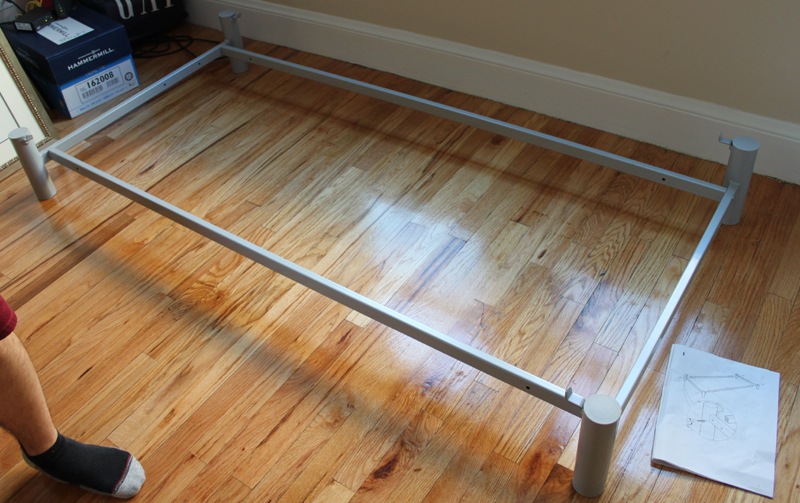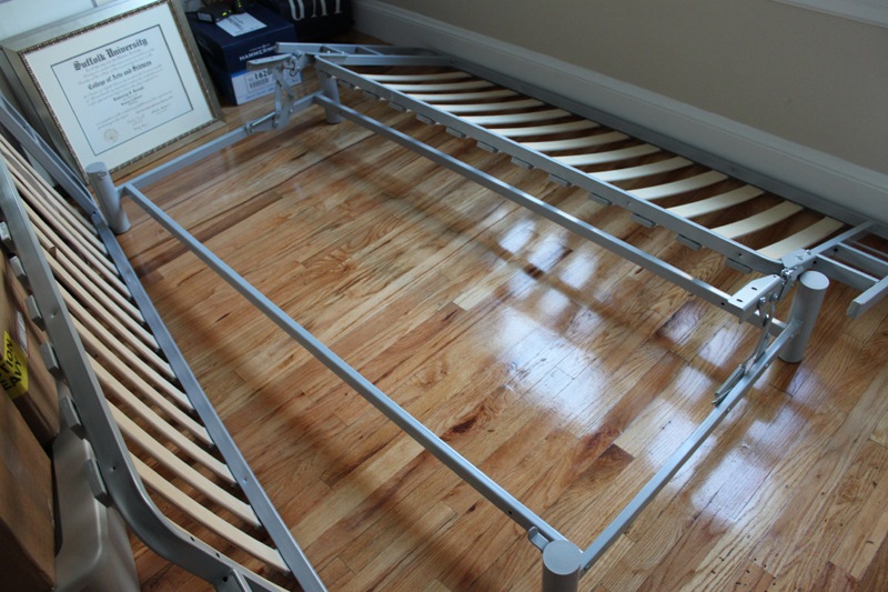 We painstakingly got the folding parts of the couch/bed all lined up on the frame.