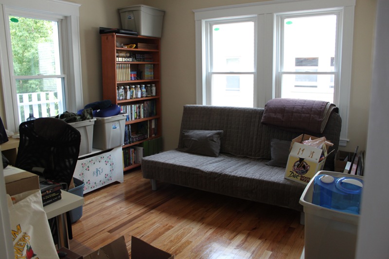John and I finished this project last week. It didn’t take that long to actually do, the delay was caused by the boxes all over the floor preventing us the necessary space to finish it.