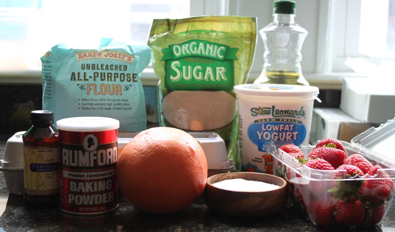 This weekend, on our way home from New Jersey, we stopped in Connecticut at Stew Leonard’s, a kitschy grocery store with an excellently fresh selection. That’s where I scored my ginormous grapefruit as well as the yogurt for the base of my bread. However, when I got home I realized it was vanilla yogurt with more sugar than I prefer in it. So I adapted my recipe to swap the sugar and for honey and agave. Here goes!