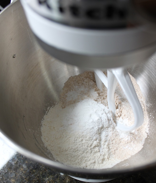 First I combined my flours, baking powder, and salt.