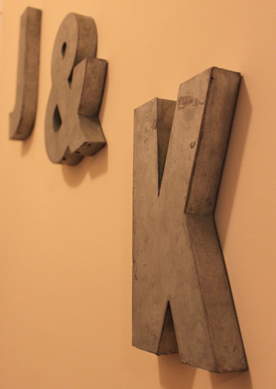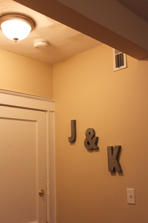 We bought these really cool industrial, yet awesomely modern, initials from Anthropologie about a year ago. We knew we wanted to hang them right by the front door. This was a quick project we finished while stuck inside this weekend.