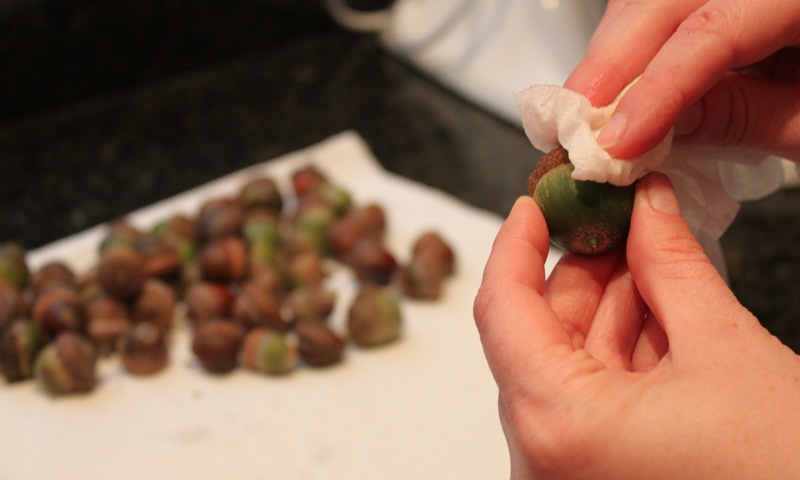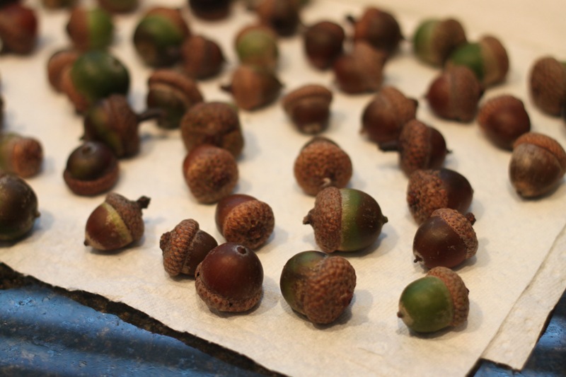 I spread out all of my acorns on a paper towel and shook them around to get the dirt off.