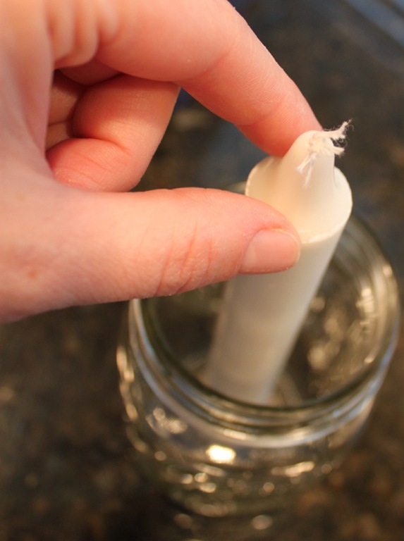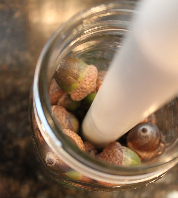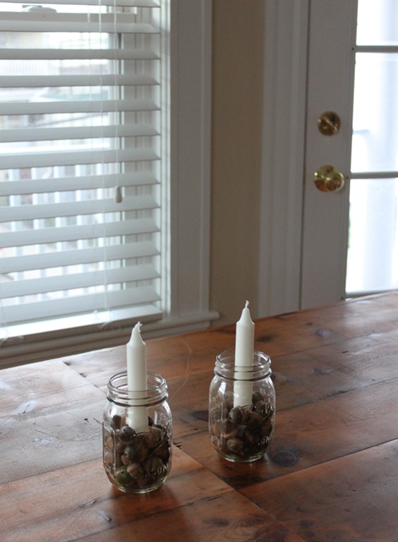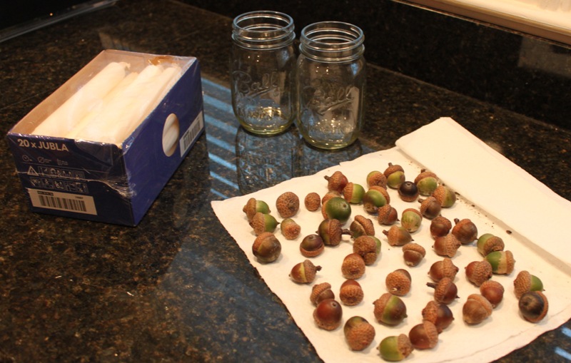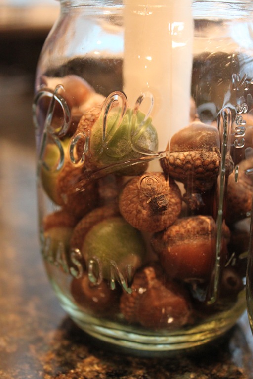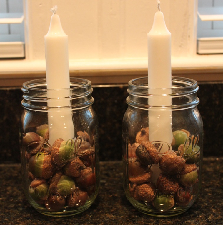The rest was super easy: I centered my candle in the middle of the jar and surrounded with half of my acorns, and repeated that for both jars.