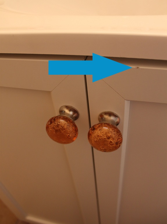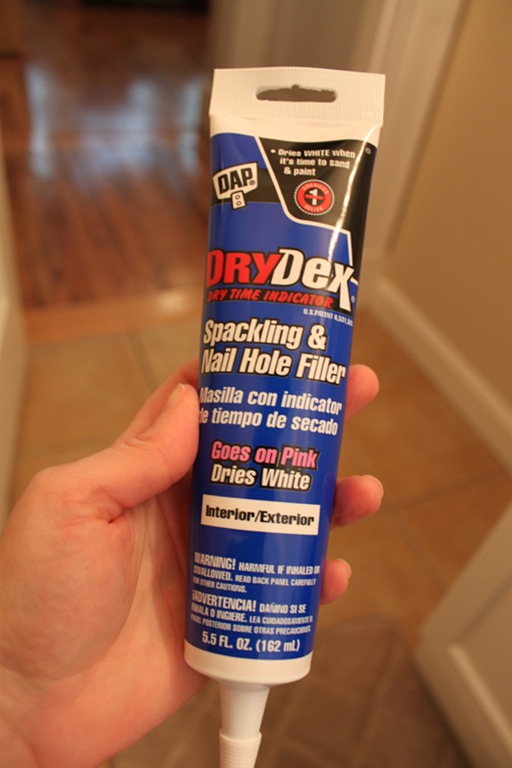While replacing the knob I noticed a slight ding in the cabinet door which was beyond distracting to me. I busted out my spackle and filled the small hole. A quick plug for this DryDex stuff: it goes on pink and dries white (genius), it’s durable, and smooth.
