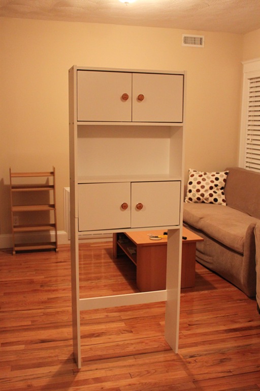 Next up, storage cabinet. After much shopping we ended up with this one from Target. Up front, this thing is not our favorite. But we’re going to tolerate it for a little while until we can find a better solution.