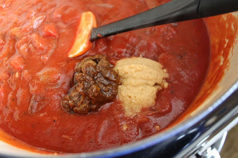 After that time I added the tomato paste and simmered on low with cover off for 4 hours to reduce, stirring often. You don’t have to let it go for that long, but the longer the better.