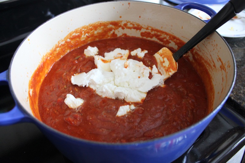 Next I added the greek yogurt and let it boil together for another 3-5 minutes. I then put the cover on and let the whole thing simmer on low-medium heat for 1 hour.