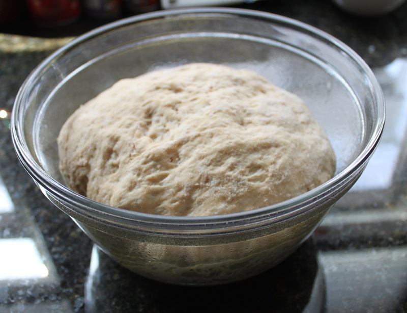 Mix all of your ingredients together starting with all the dry ingredients and adding water as needed. Turn the dough out onto a floured surface (I’m loving our new granite countertops for this!) and knead for about 5 minutes. Put the dough in an oiled bowl and cover with a towel. I let mine rise for 2 hours, kneaded again for 5 minutes, and let it rise for another 2 hours. It’s done when it’s light, airy, and fluffy.
